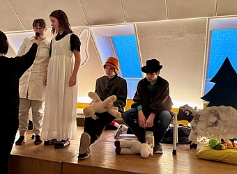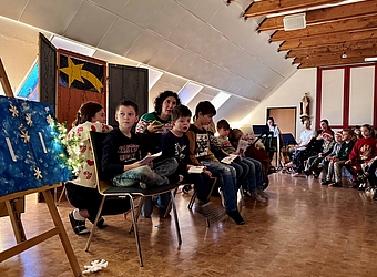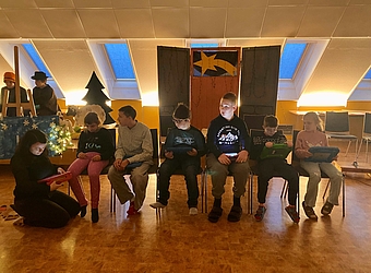 Stimmungsvoll beginnen wir mit der Adventkranzsegnung die schönste Zeit im Jahr. Mit einem kleinen Erzählstück über vier Kerzen der 2. Klasse und einem Lichtertanz der 1. Klasse, mit Adventgedichten der Klassen AVL und Grün, mit Musik und Gesang freuen wir uns nun auf eine besinnliche Zeit.