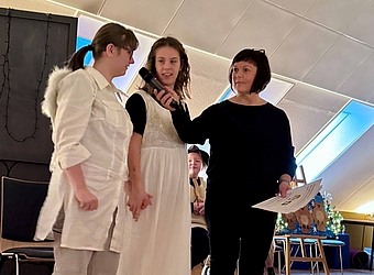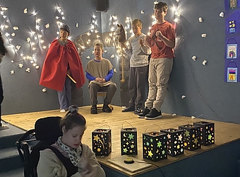 Martin teilt den Mantel - die Klasse Ananas teilt Begeisterung und Freude. Die Jugendlichen der Klasse Ananas sind über sich hinausgewachsen und haben manche mit ihrem "Rollenspiel" überrascht und zu Tränen gerührt.