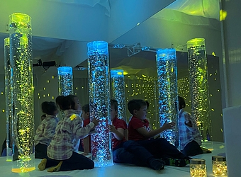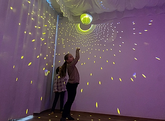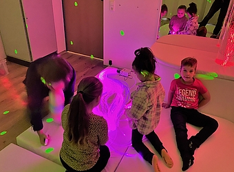 Unser Musikraum ist mit einem Lichtspiel und einem schwingendem Boden ausgestattet, dies ermöglicht ganz besondere musikalische Erlebnisse.