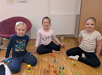 Bei der GTS geht es immer lustig zu. Wir bewegen uns gerne - bei trockenem Wetter im Garten, bei nassem Wetter im Turnsaal und wir haben viel Zeit zum Spielen, das gefällt uns besonders gut.